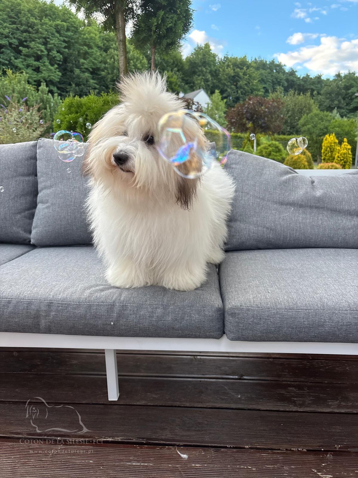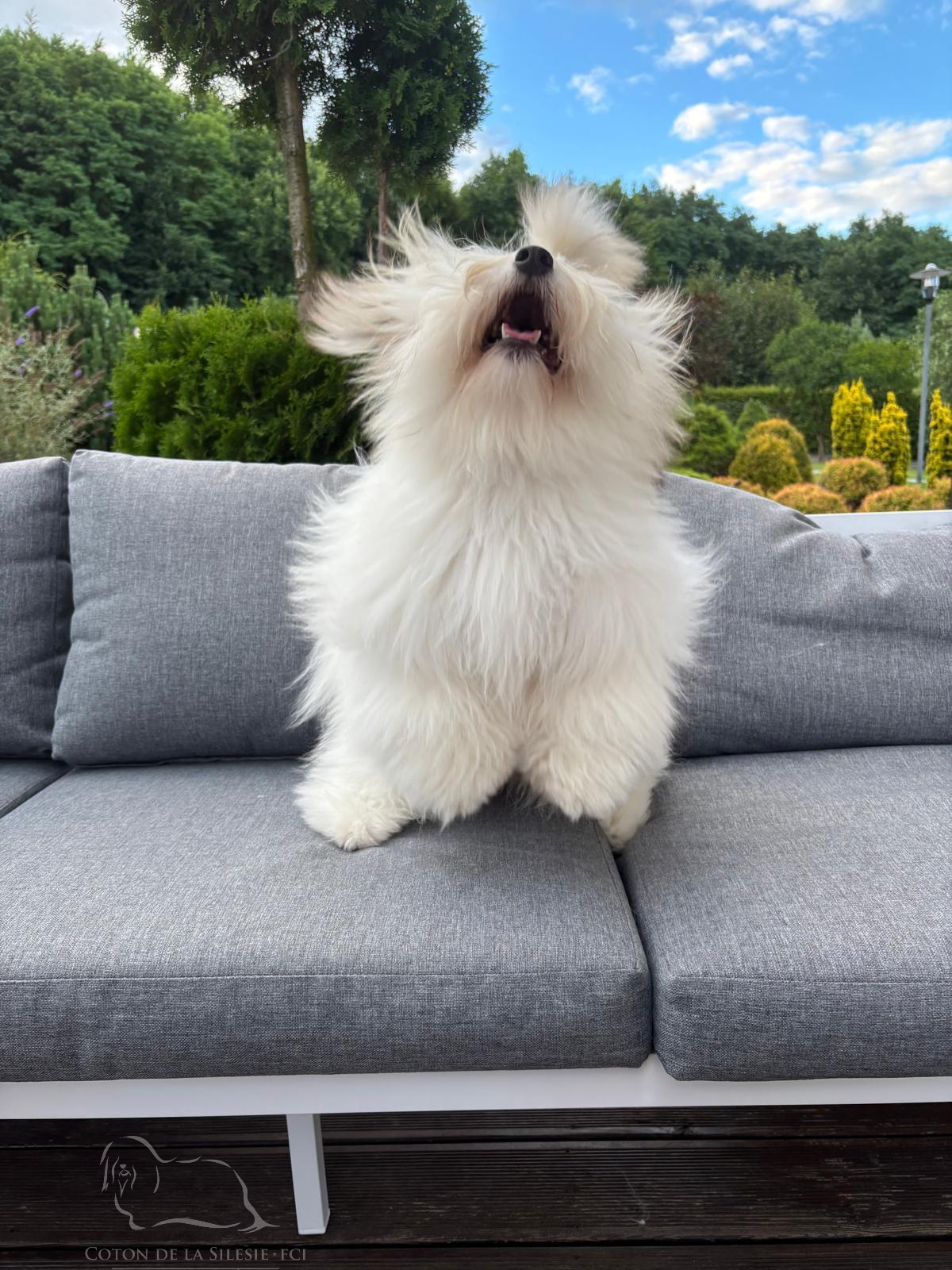 PINKIE PIE to nasza mała gwiazda, szalona, przytulaśna cotonka. Każdego gościa powita wielkimi całusami. To córka naszej Championki Kayry i naszego Championa Tassilo.